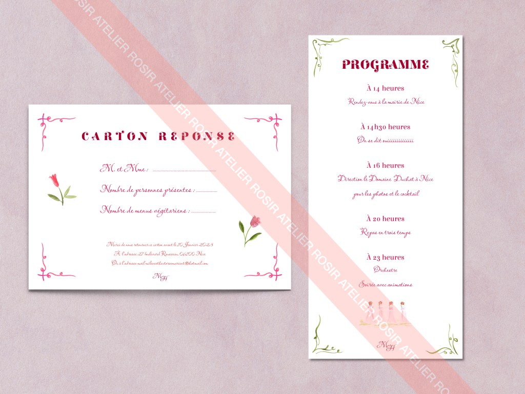 A partir du modèle, vous choisissez dans le formulaire les faire-parts dont vous avez besoin. Suite à votre demande, je prends contact avec vous et vous envoie un devis rapidement. Une fois le devis validé, nous échangeons ensemble concernant le texte à remplacer et s’il y a des petits éléments à ajuster. Une fois que tout est fait, je vous envoie un aperçu de la totalité des faire-part pour validation.